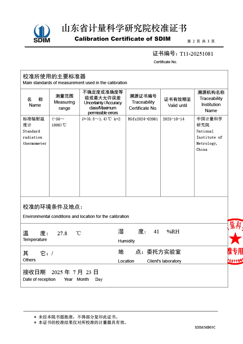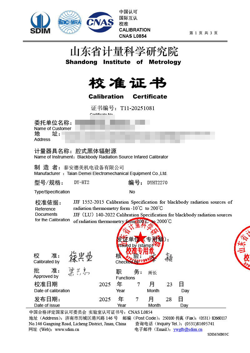 | 上一條:低溫面源黑體爐(0-60℃)校準(zhǔn)證書 | 下一條:DY-HT2M-C高溫面源黑體爐(100mm) |