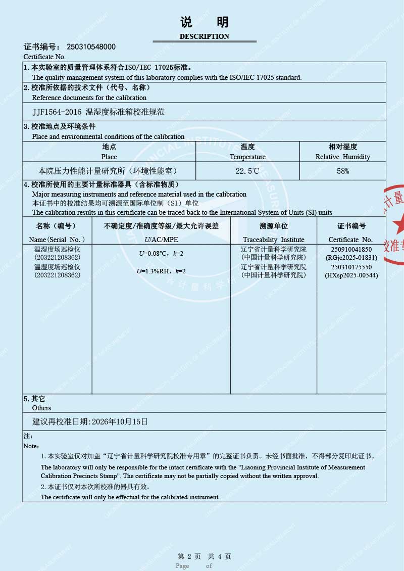 便攜式溫濕度檢定箱(-10-60℃)校準證書 2025-10-30 本文被閱讀 2051 次
