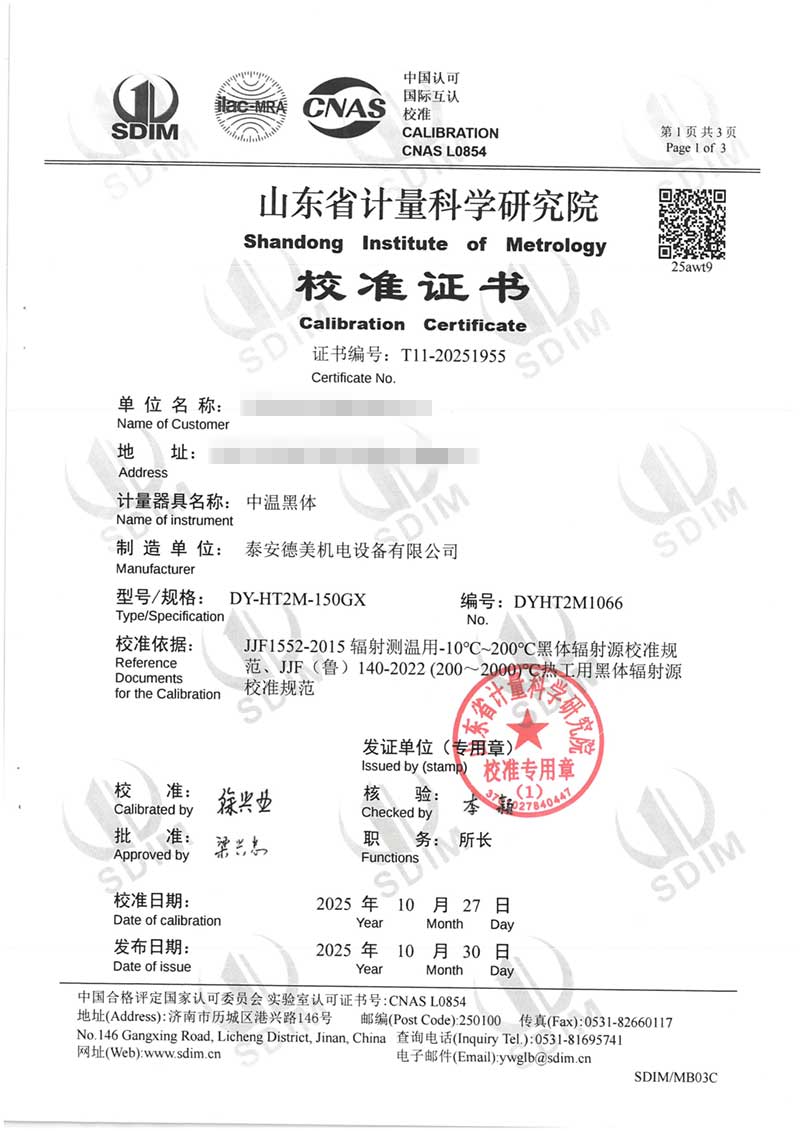 | 上一條:溫濕度檢定箱(-5~65℃)校準(zhǔn)證書 | 下一條:DY-HT2M-C高溫面源黑體爐(100mm) |