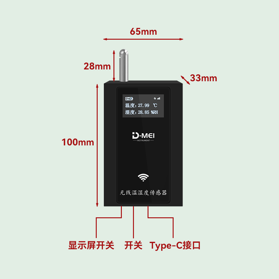 屏幕顯示信息 | 實時溫度、濕度、剩余電量 |