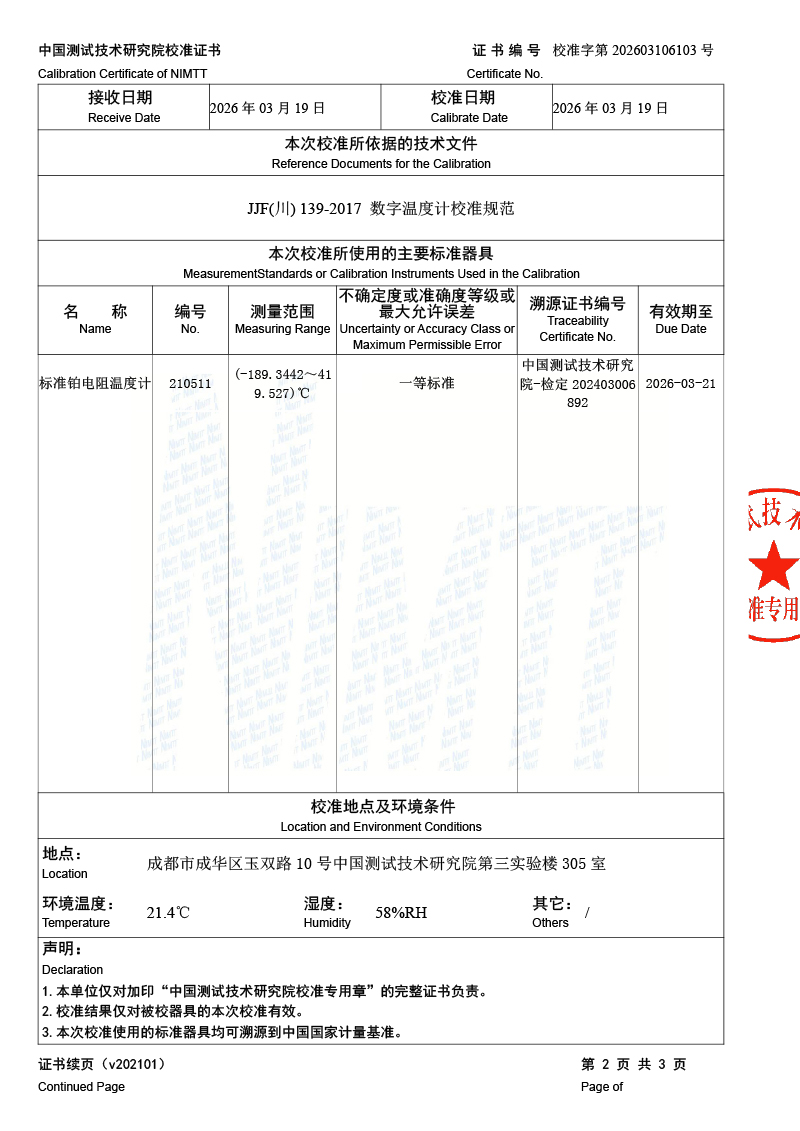 數(shù)字溫度計-校準(zhǔn)證書 2026-3-20 本文被閱讀 135 次