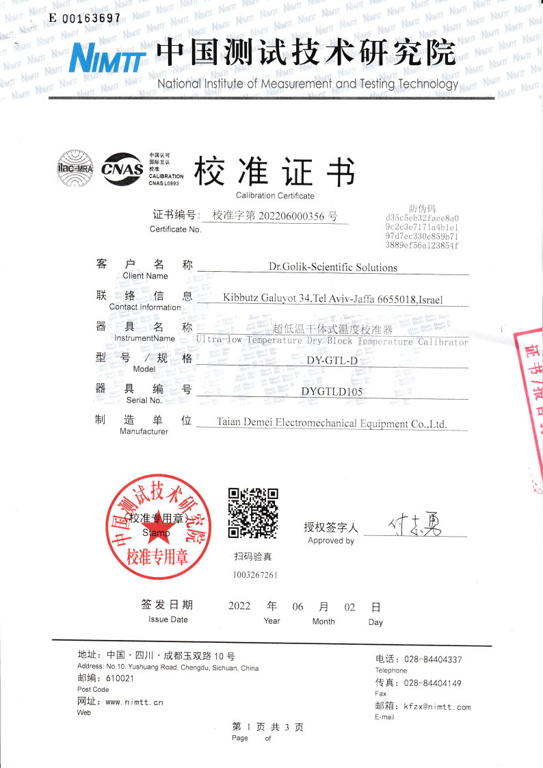 以色列-超低溫干體爐 2022-6-7 本文被閱讀 15224 次