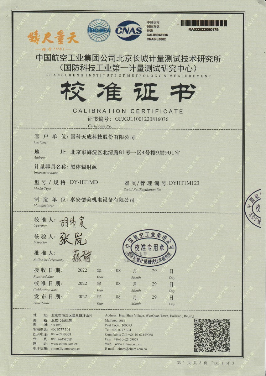 國科天成科技股份有限公司-黑體輻射源 2022-9-5 本文被閱讀 15671 次