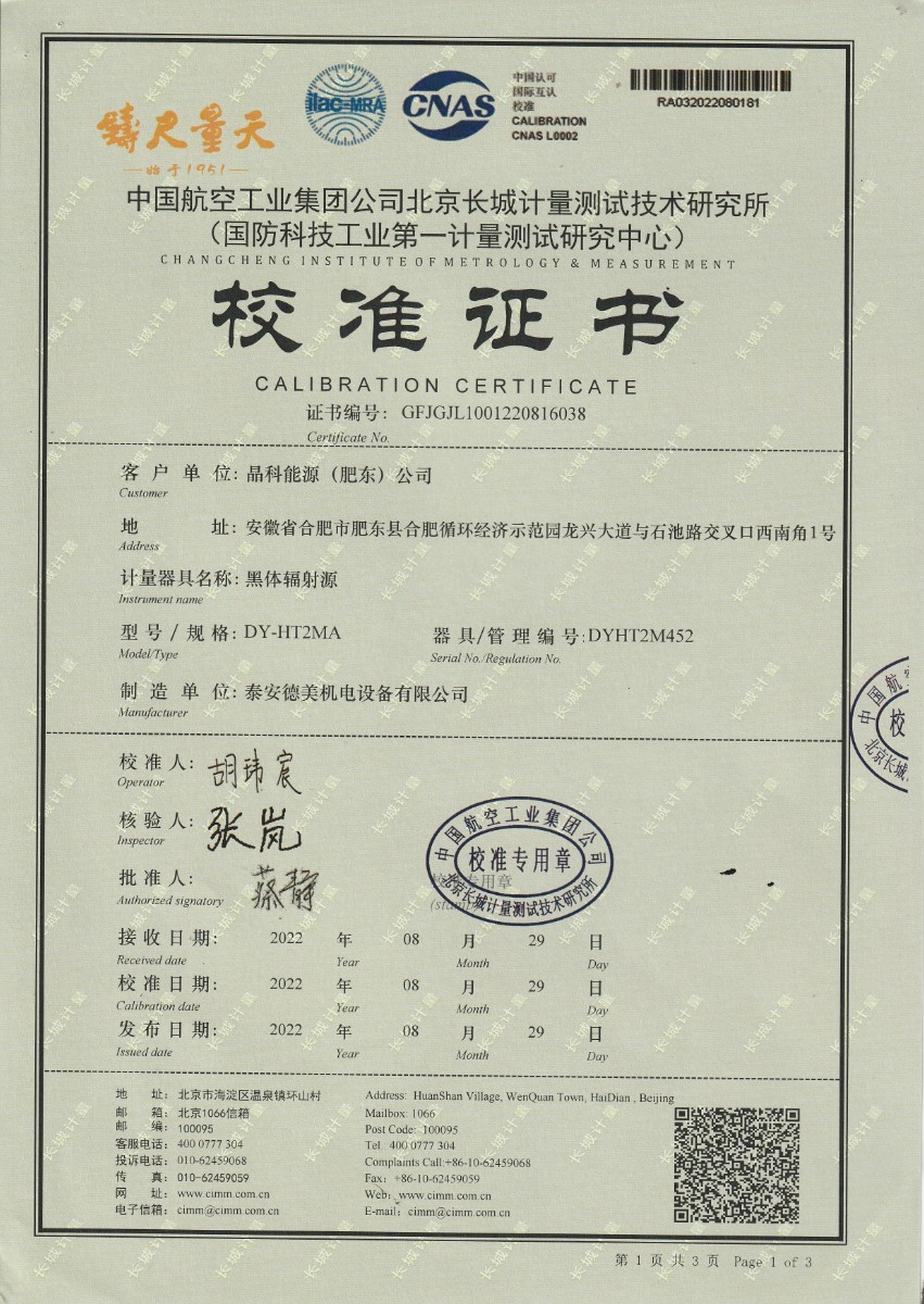 晶科能源(肥東)公司-黑體輻射源 2022-9-5 本文被閱讀 13561 次