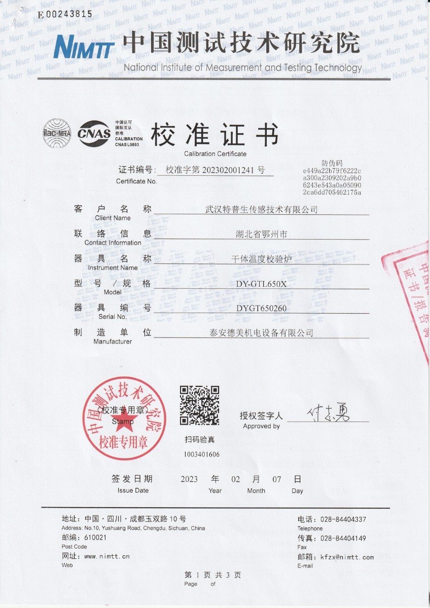 | 上一條:泰安德美機(jī)電設(shè)備有限公司 TRT4.82 精密輻射溫度計(jì) 校準(zhǔn)證書(shū) | 下一條:DY-XW100E無(wú)線溫濕度記錄儀 |