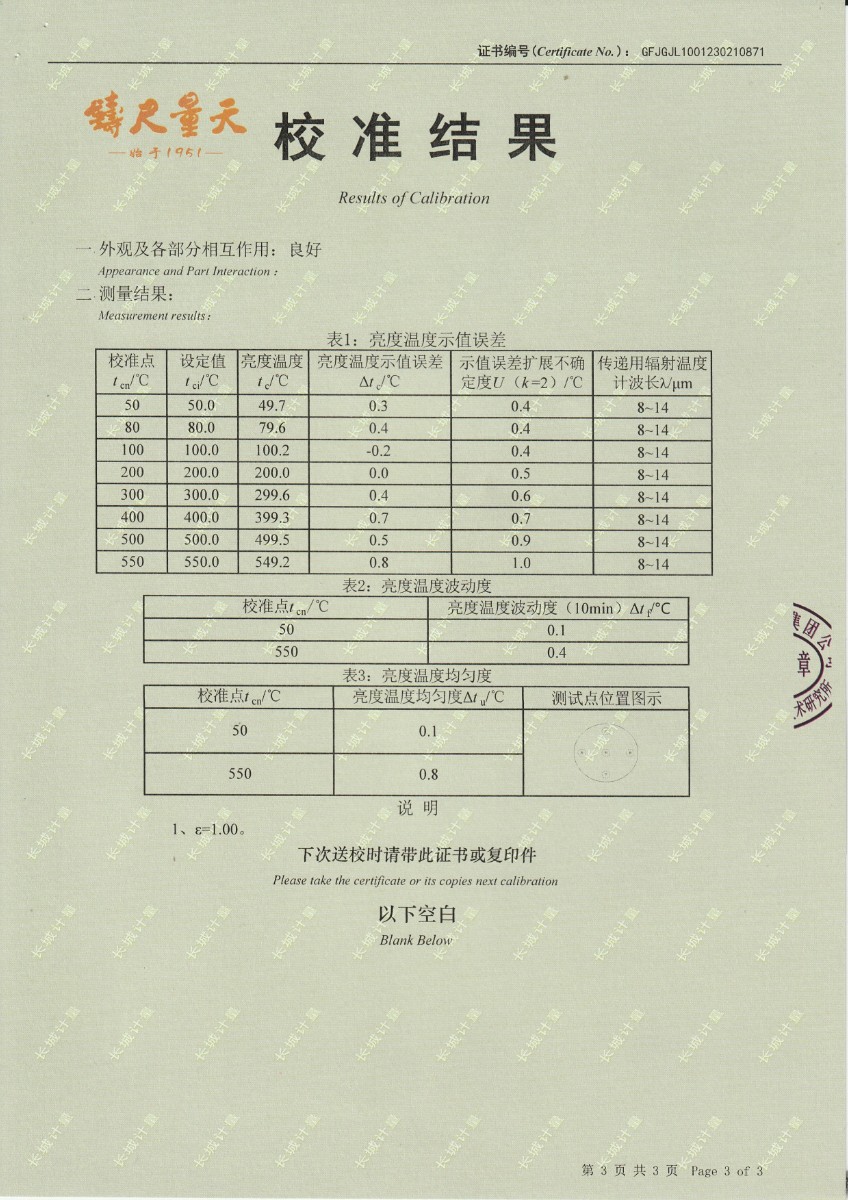 青島加侖檢測技術(shù)服務(wù)有限公司 黑體輻射源 校準(zhǔn)證書