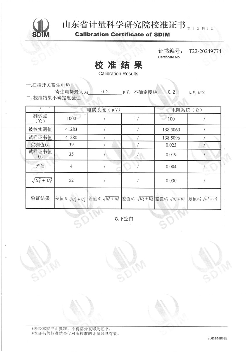 | 上一條:中溫干體爐296(50~650℃)校準(zhǔn)證書 | 下一條:DY-HT2M-C高溫面源黑體爐(100mm) |
