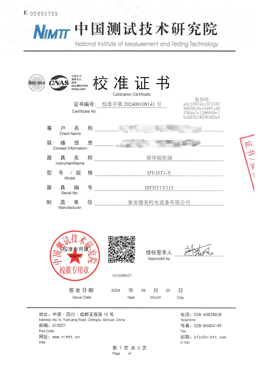 浴式黑體校準(zhǔn)證書 2024-10-21 本文被閱讀 8249 次