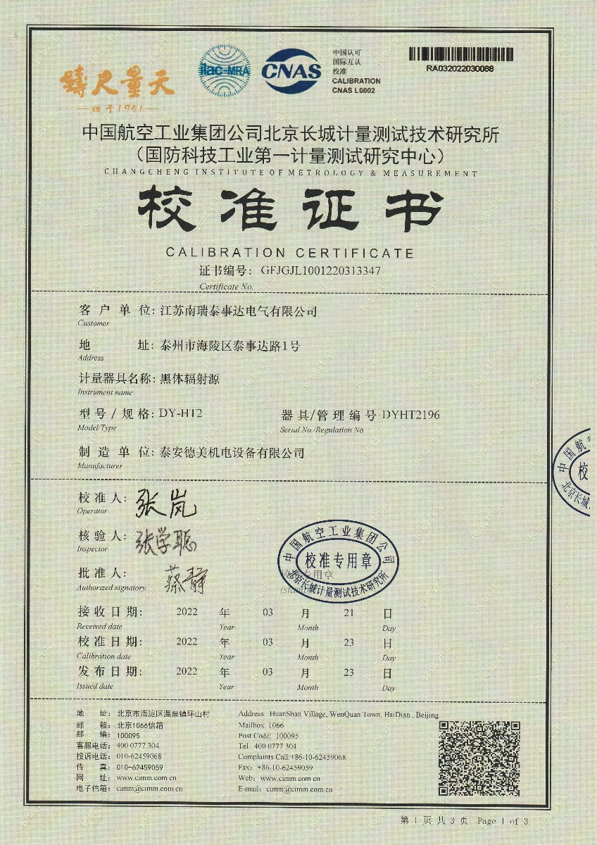 江蘇南瑞泰事達(dá)電氣有限公司-黑體輻射源 2022-3-29 本文被閱讀 15865 次