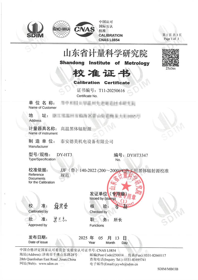 | 上一條:黑體爐(50~400℃)校準(zhǔn)證書(shū) | 下一條:DY-HT2M-C高溫面源黑體爐(100mm) |