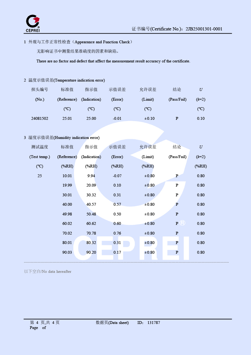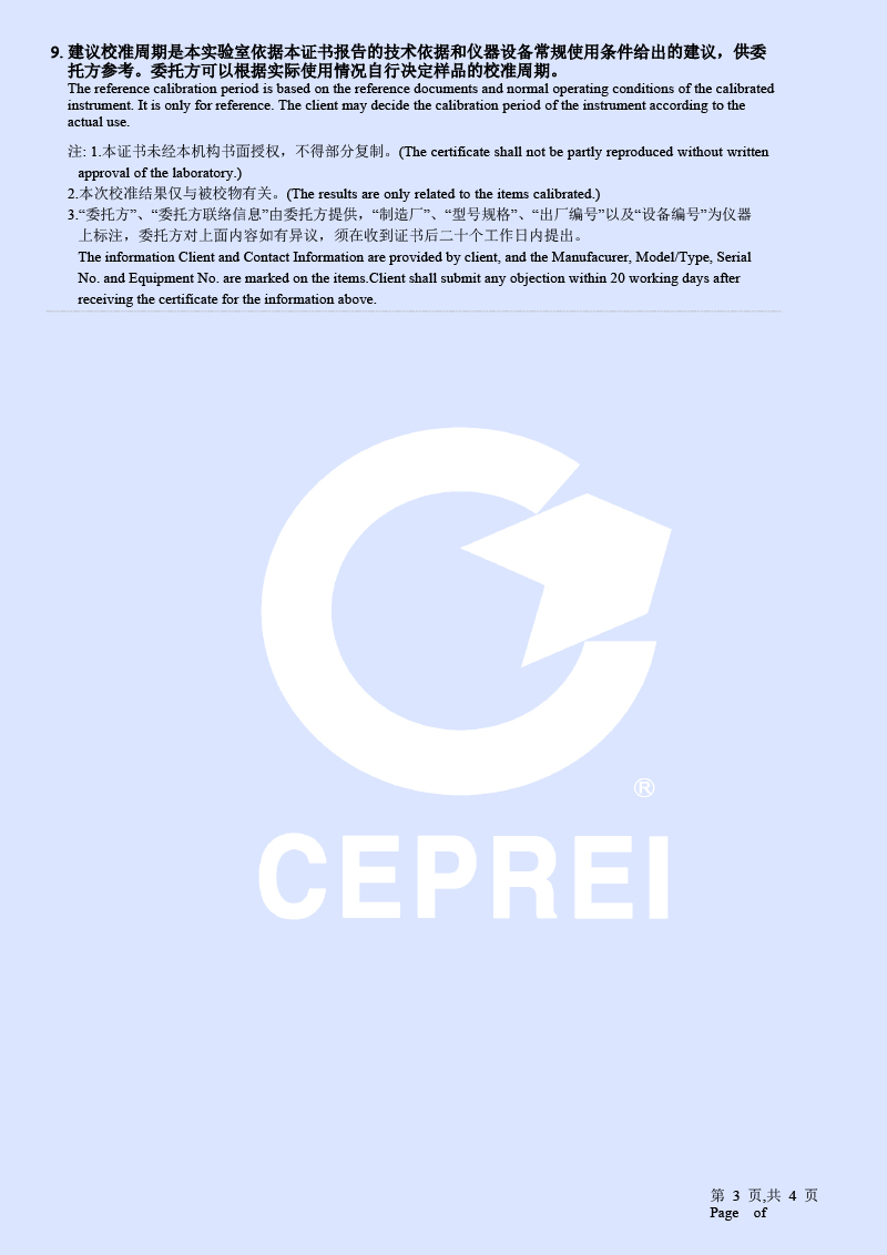| 上一條:中溫面源黑體爐(室溫+5-500℃)校準(zhǔn)證書 | 下一條:水三相點(diǎn)瓶凍制保存裝置-校準(zhǔn)證書 |