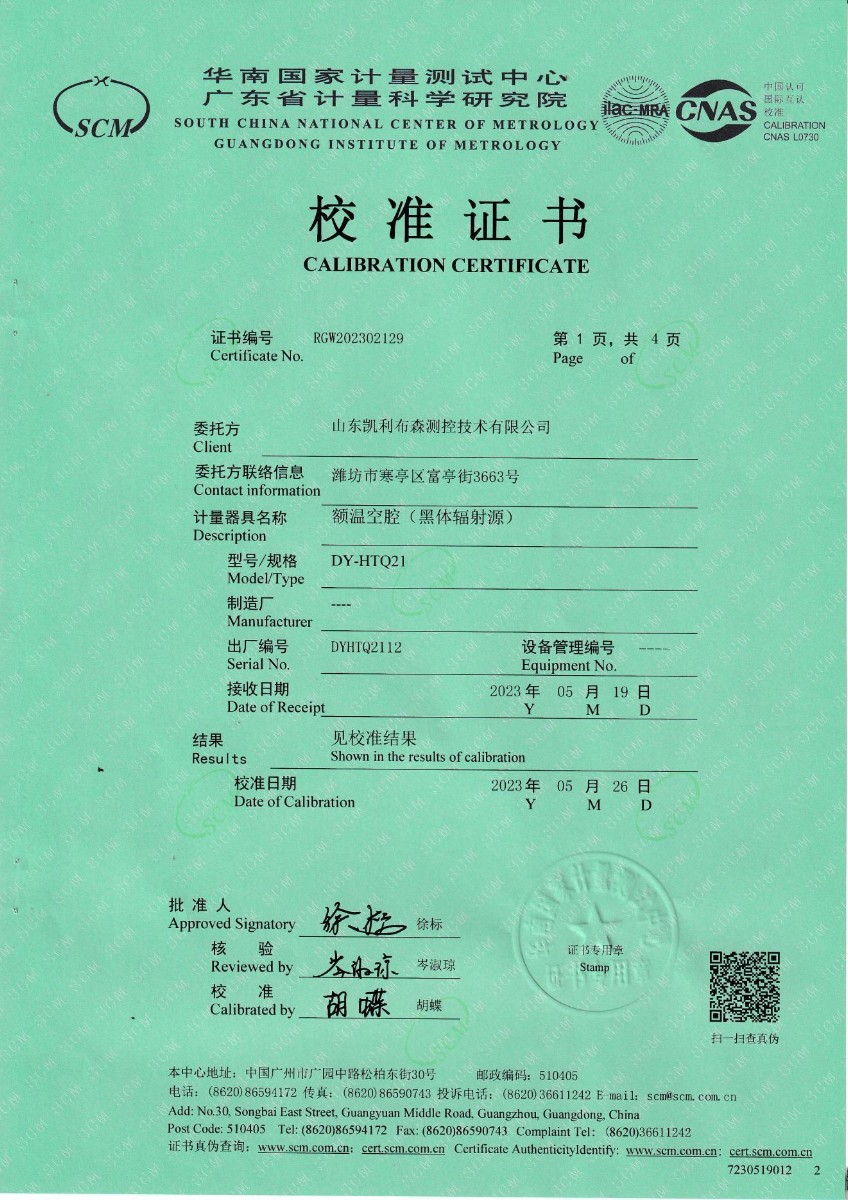 | 上一條:魯南中聯(lián)水泥有限公司 便攜式恒溫油槽 校準證書 | 下一條:DY-HT2M-C高溫面源黑體爐(100mm) |