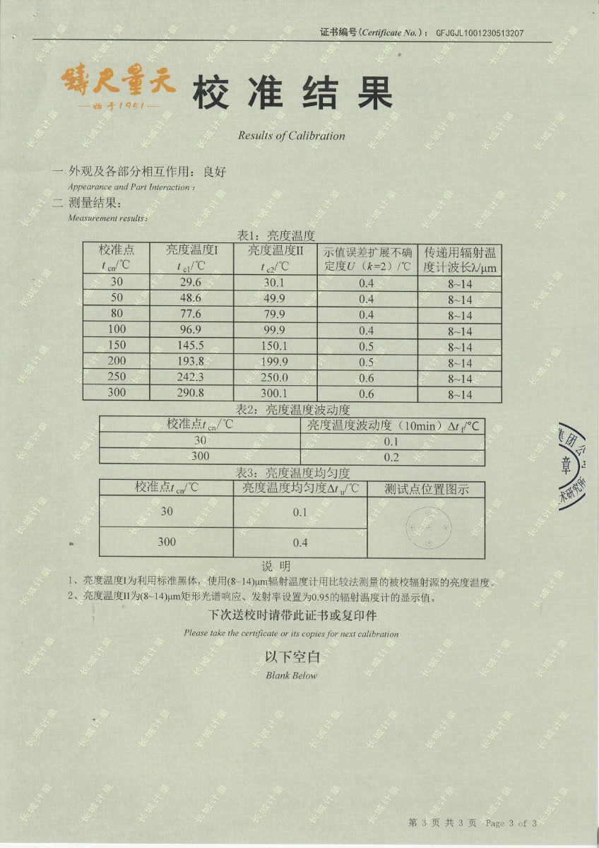| 上一條:云南馳宏國際鍺業(yè)有限公司 面源黑體校準證書 | 下一條:DY-HT2M-C高溫面源黑體爐(100mm) |