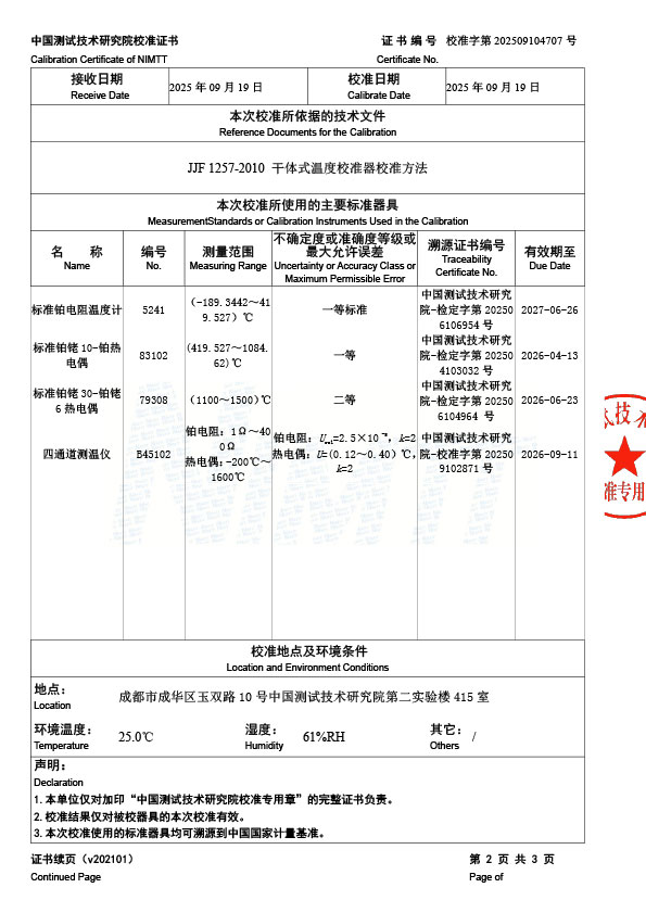 高溫干體爐(300-1200℃)校準(zhǔn)證書 2025-9-22 本文被閱讀 2114 次