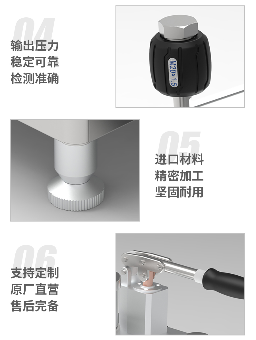 ◆螺旋式升降壓,升降壓平穩(wěn),回程檢定易操作