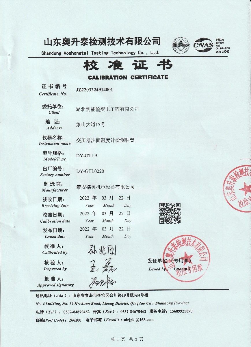 湖北荊能輸變電工程有限公司-變壓器油面溫度計檢測裝置 2022-3-28 本文被閱讀 17760 次