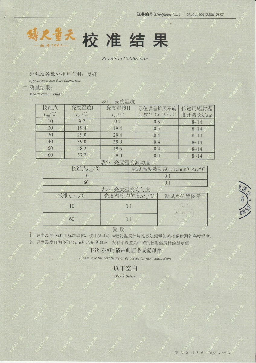 面源黑體爐DYHT1M141校準(zhǔn)證書 2023-9-20 本文被閱讀 9701 次