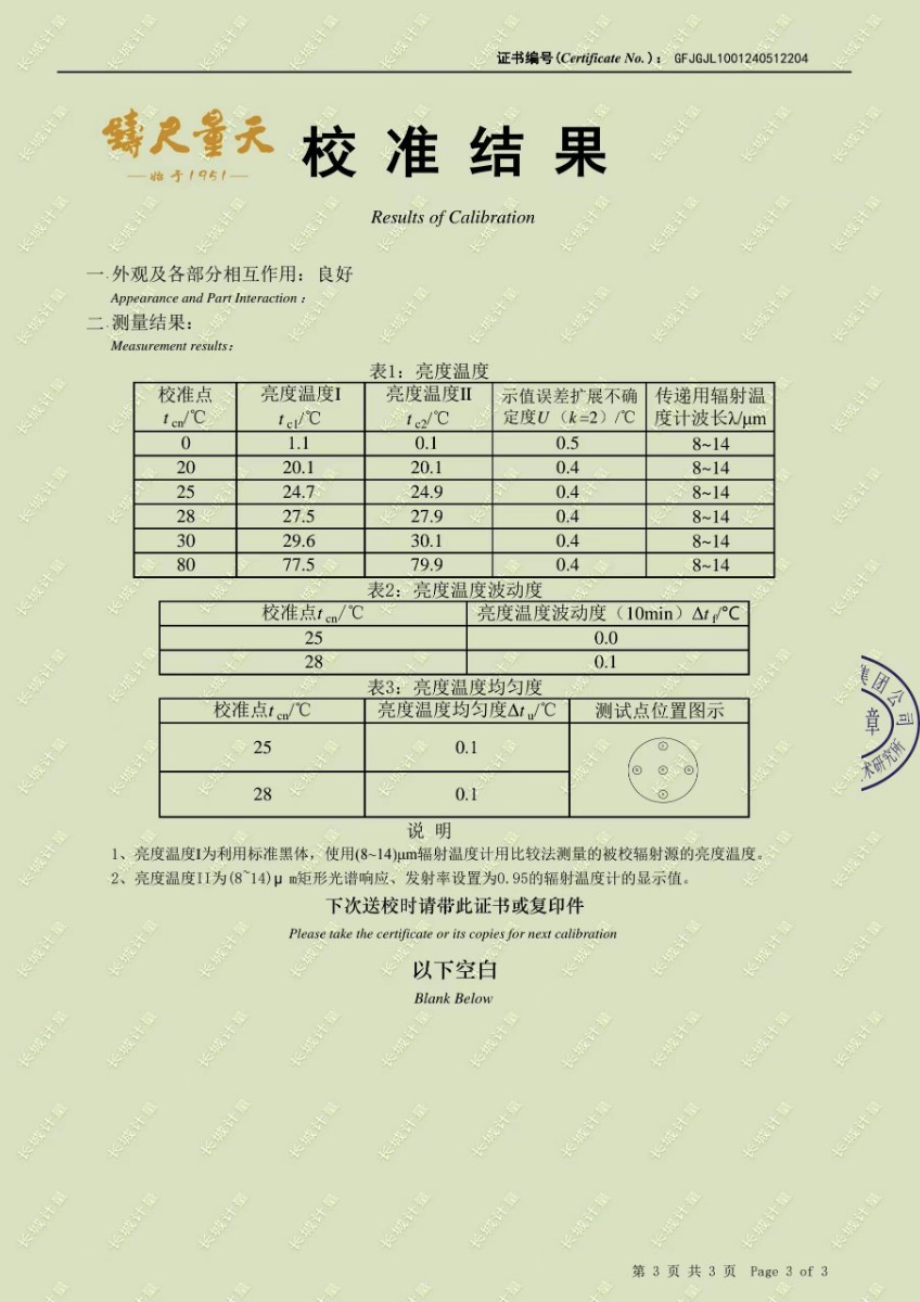 面源黑體爐校準(zhǔn)證書(shū) 2024-5-31 本文被閱讀 7514 次